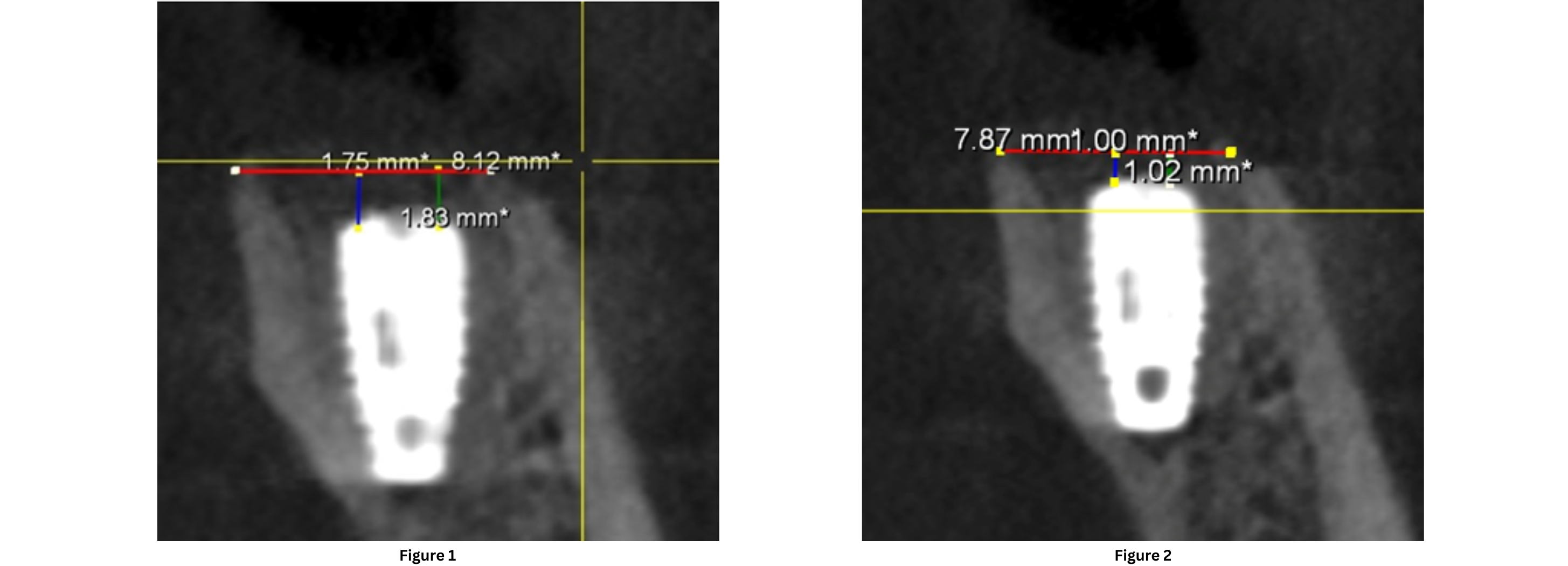 Figure 2: This CBCT image was taken 3 months after implant placement. It shows the crestal bone level measurement after 3 months.