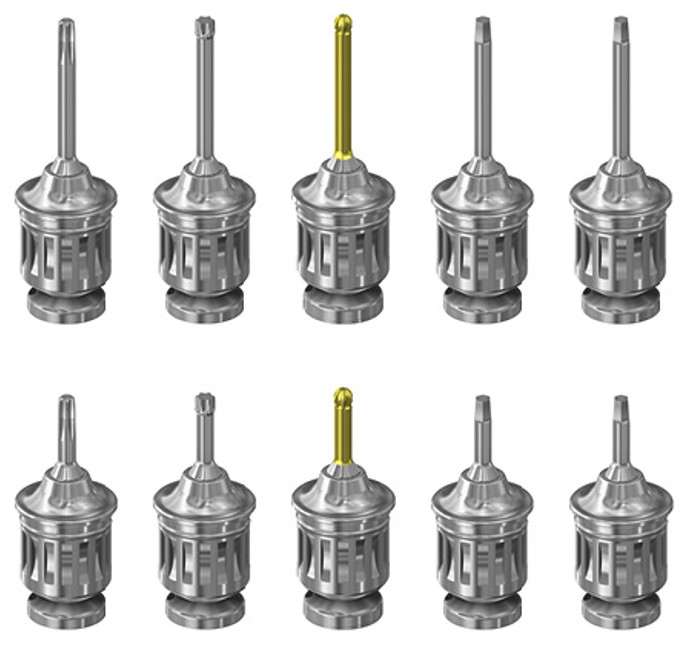 - Compatible con llaves dinamométricas Nobel: todos los destornilladores pueden utilizarse manualmente y son adaptables a llaves dinamométricas Nobel o compatibles.